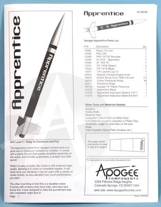 The Apprentice was designed to be a ‘first kit’ for someone that has never participated in rocketry before. It is the ‘apprentice level’ which is where the rocket got its name.