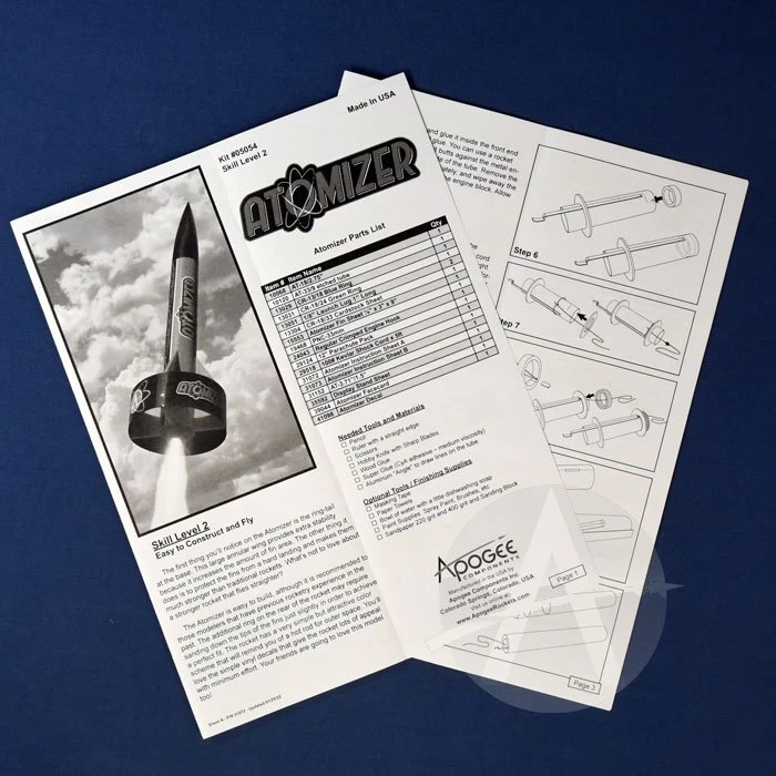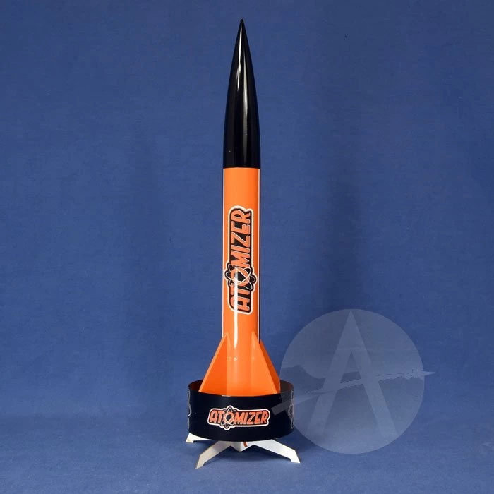 With its stove-pipe ring tail, the Atomizer is sure to be different from all the other rockets at your next launch. It flies straighter too! The rocket is a joy to assemble, and flies to about 400 feet on a C-size rocket motor.