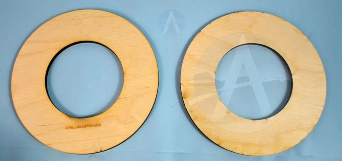 Plywood Centering Rings. Allows you to mount a 75mm LOC Motor Mount Tube within a 6.0″ Blue Tube. Two rings per package.