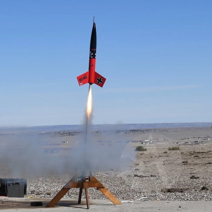 The Der Big Red Max is the latest in a long line of rockets by a similar name from Estes Industries. They all feature the same style of art, and a theme that seems akin to the Red Baron, however this is the first of these to feature a 3″ airframe, 29mm motor motor mount, and capable of mid-power motors.