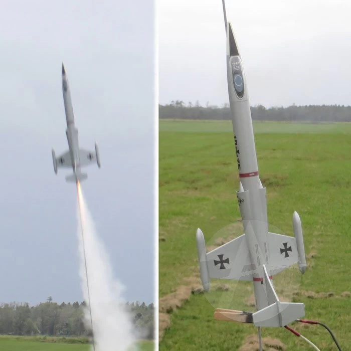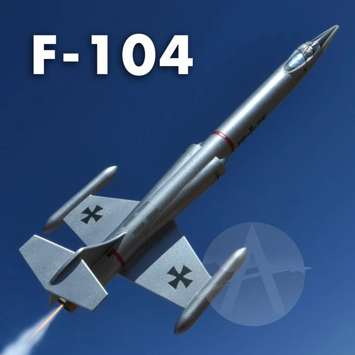 The F-104 Starfighter is an updated and improved rendition of the 1977 Centuri rocket kit. It is more realistic to the actual fighter jet in that the air inlets are circular rather than rectangular. Flies on 18mm diameter rocket motors.