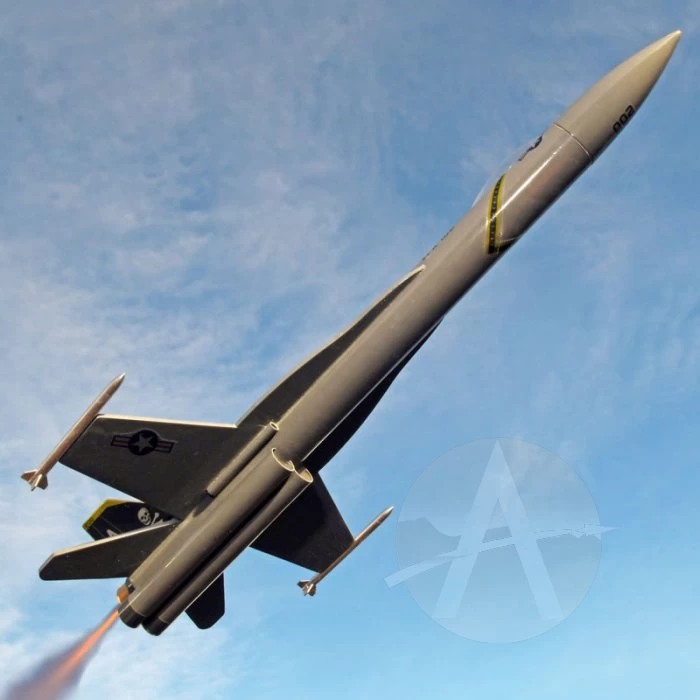 Based on the F18-Hornet, the aircraft of the US Navy’s Blue Angel’s for 34 years, this fighter from Odd’l rockets will surely stop people in their tracks. The rocket features balsa fins, a plastic nose cone, a clear vacuum form canopy, 3D printed missiles and Waterslide decals.