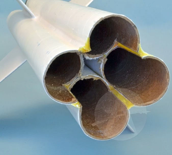 Two stages with a 4 motor cluster on EACH stage, makes this an intense rocket. Not for the faint of heart, this rocket epitomizes the complexity of model rocketry.