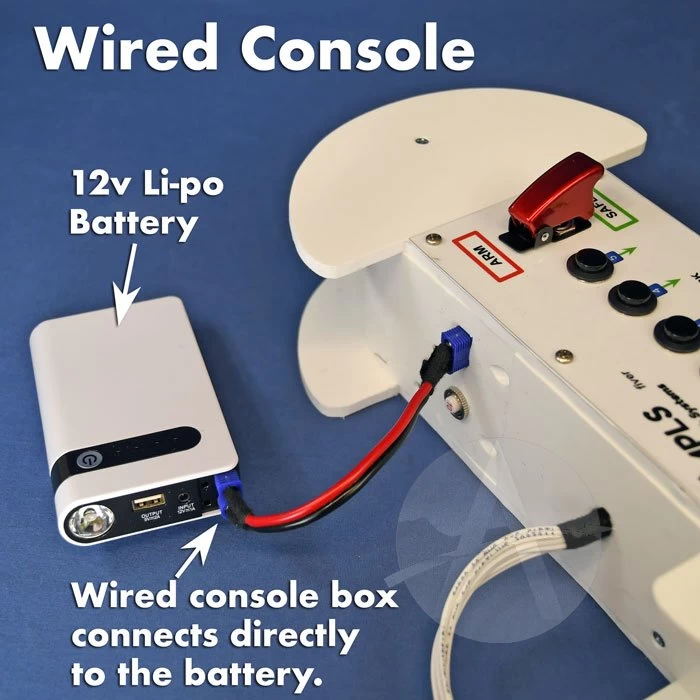 | Great at preventing accidental launches - requires 4 separate actions in order to launch a rocket. Bundle includes | 5-rod launch pad, 5-rocket launch controller, the wired controller for the launch pad, and battery. 12V Li-Po Battery included so you can launch composite motors too Battery charger is included too! Includes |