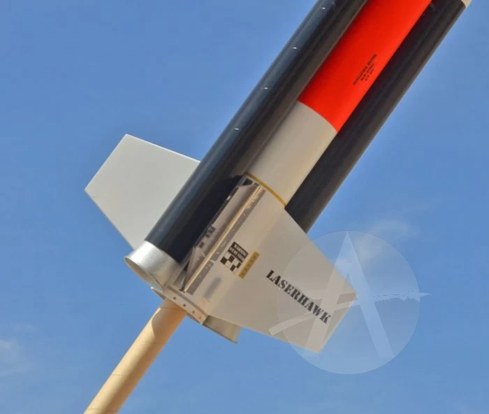 The LaserHawk represents a complex sounding rocket. The design is capable of flying to altitudes almost 1700 feet on an Aerotech G80 motor.
