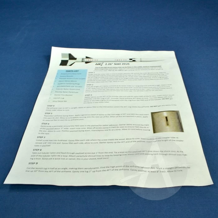 This is the Loc Precision, Nike Zeus. Modeled after a cold-war era rocket, this sport scale model rocket looks and feels like the rockets developed at the time. Built for 29mm high power rocket engines, this rocket mimicks the real surface-to-air missile.