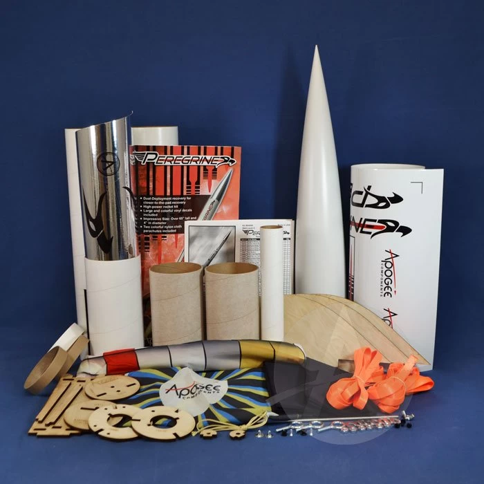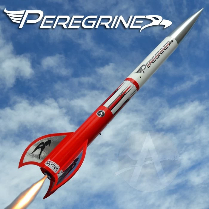 The Peregrine is a robust high-power dual-deployment rocket for those people that already have their Level-1 high-power certification. It is an easy to build rocket with the electronics compartment, dual parachutes, and two full sheets of vinyl decals. The big size and colorful decor make it a crowd-pleasing rocket.