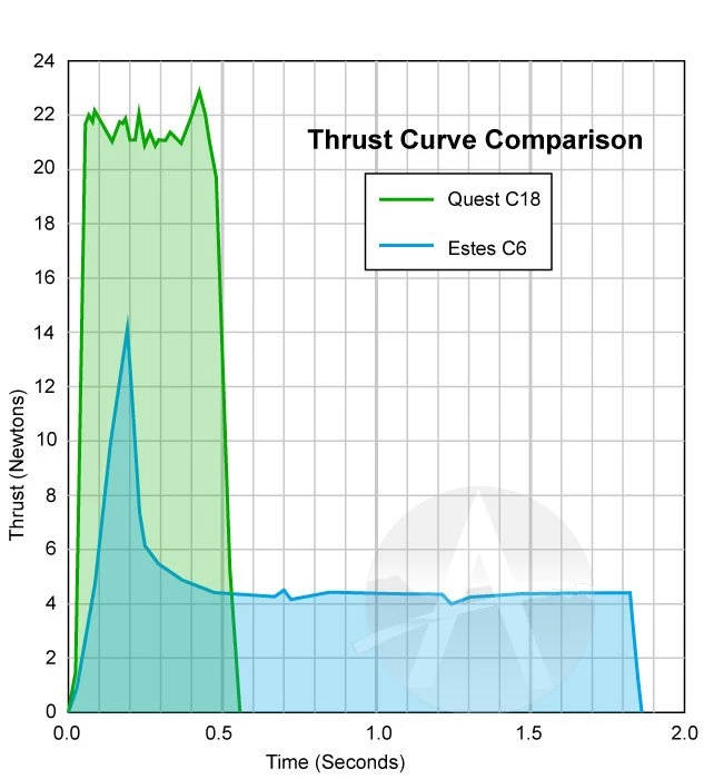 The Quest C18-8 is a great all-around motor for your typical rockets. It is particularly suited for heavier or larger diameter rockets. It features composite propellant, which has twice the energy as a black powder motor. Same size and diameter as an Estes motor, so it fits all your favorite rockets. But this is for single-stage rockets only, as it cannot be staged.
