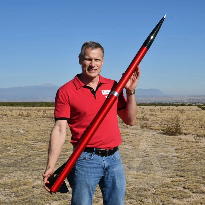 An all fiberglass rocket that is super durable and can take any punishment you want to give it. Uses 38mm motors, so it is a nice model after you’ve got your High Power certification. The Darkstar Jr can be flown on high-thrust G motors as well as H, I and J motors, so it’s a very flexible rocket.